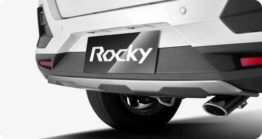 Penggunaan Headlight LED, DRL LED, LED Rear Light Combination dan Sequential Turning Light juga membuat tampilan eksterior Daihatsu Rocky semakin sporty. Anda juga akan mendapatkan spoiler depan, belakang, serta side body kit. Juga menggunakan velg 17 inchi berwarna hitam.